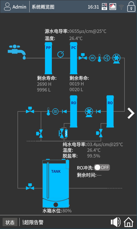 [1].受進水水質(zhì)、壓力、溫度及RO膜狀態(tài)影響 | [2].受水箱狀態(tài)及終端過濾器配置影響 |
